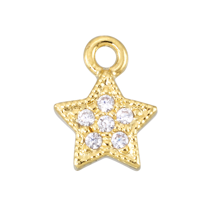Star Charm - 6.5 x 6.4mm w/Cubic Zirconia (CZ) - Sterling Silver Gold Plated