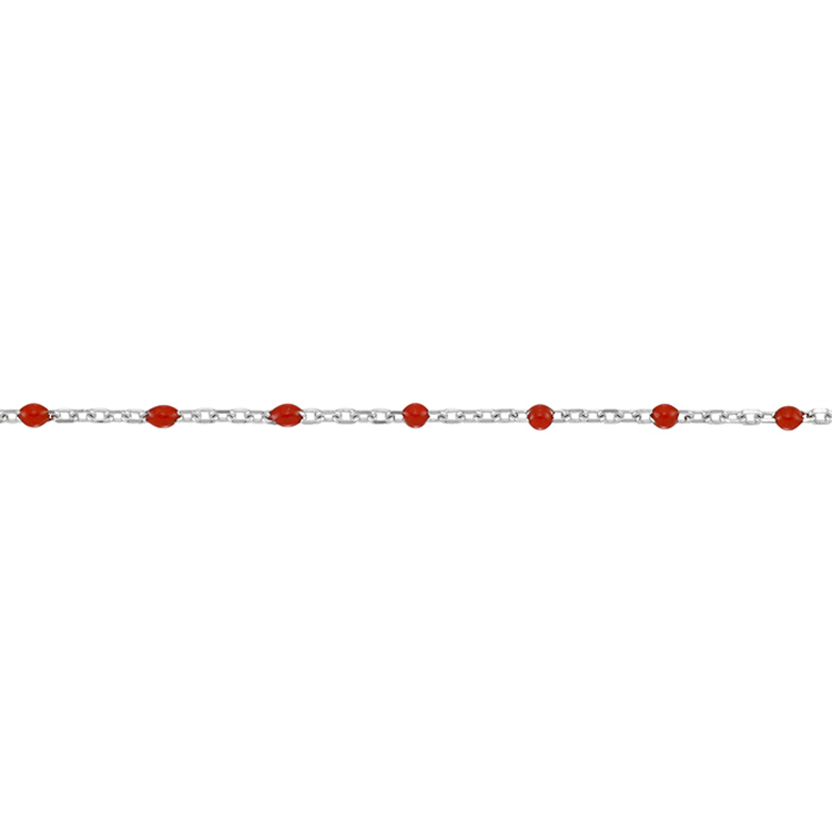 Enamel Chain 1.3mm with 2mm Red Round Enamel - Sterling Silver Rhodium Plated