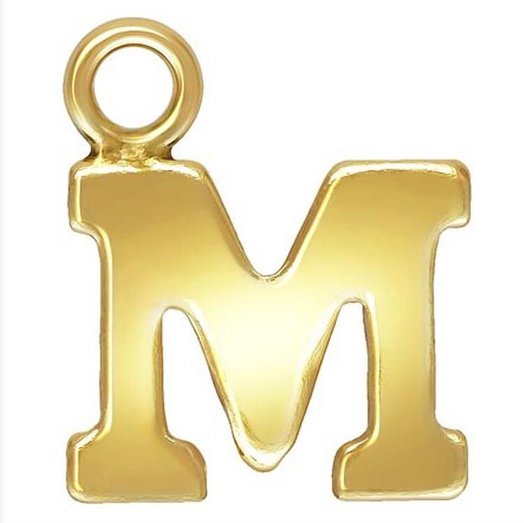 Initial M Block Style Letter Charm 8mm - Gold Filled