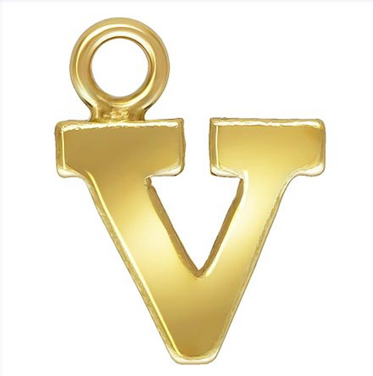 Initial V Block Style Letter Charm 8mm - Gold Filled