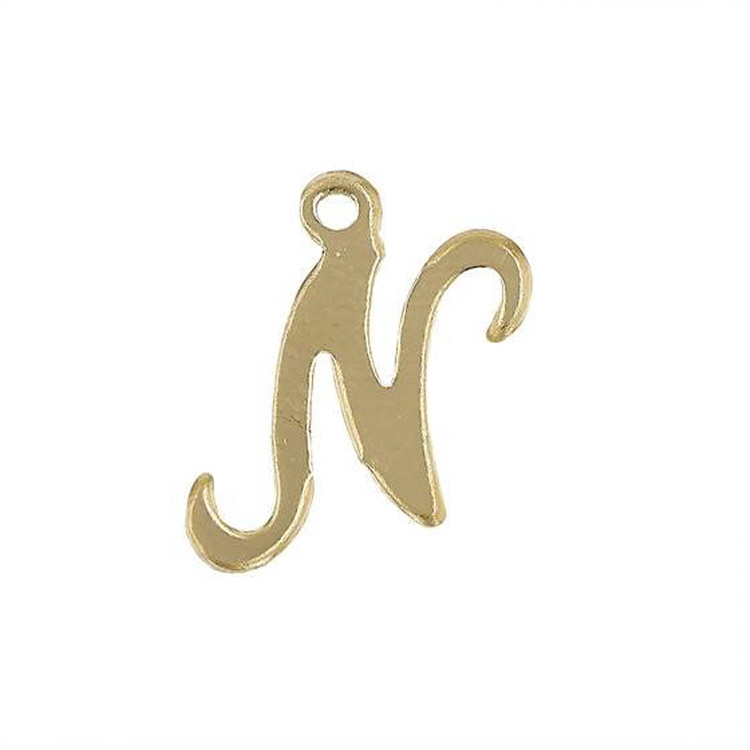 Initial N Script Style Letter Charm 12mm - Gold Filled