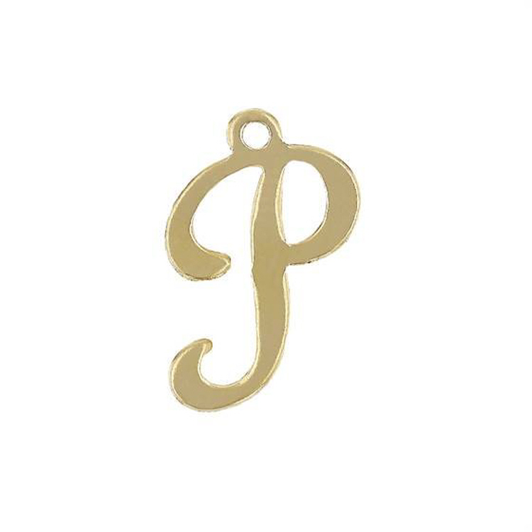 Initial P Script Style Letter Charm 12mm - Gold Filled