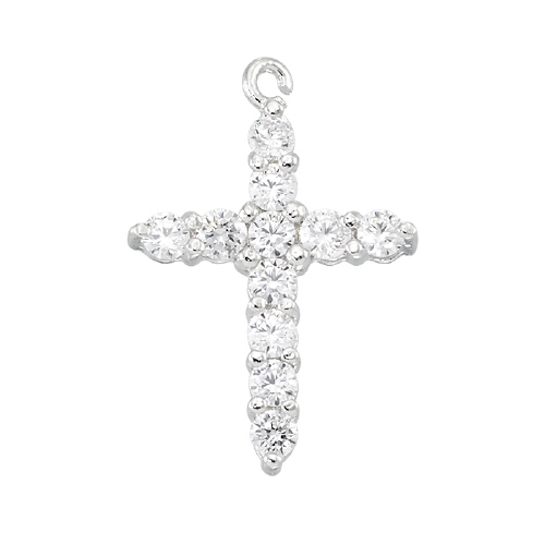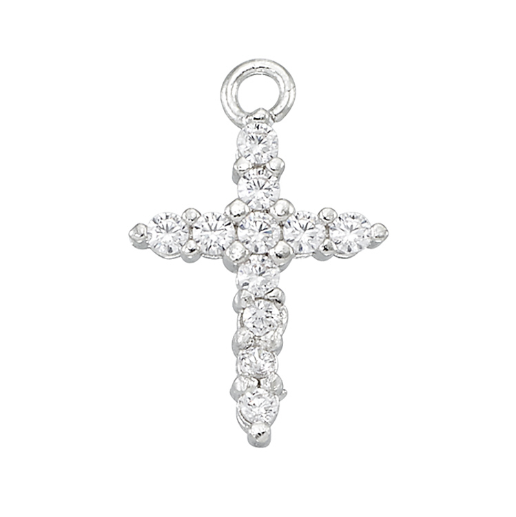 Cross Charm - 9.9 x 14.9mm w/Cubic Zirconia (CZ) - Sterling Silver Rhodium Plated