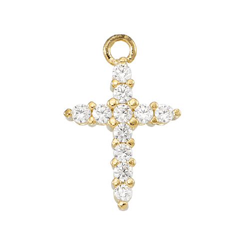 Cross Charm - 9.9 x 14.9mm w/Cubic Zirconia (CZ) - Sterling Silver Gold Plated
