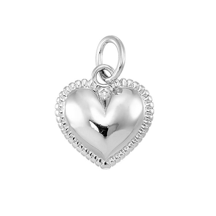 Heart - 11.7 x 12.4mm w/Cubic Zirconia (CZ) - Sterling Silver Rhodium Plated