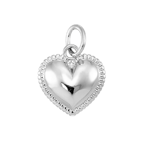 Heart - 11.7 x 12.4mm w/Cubic Zirconia (CZ) - Sterling Silver Rhodium Plated