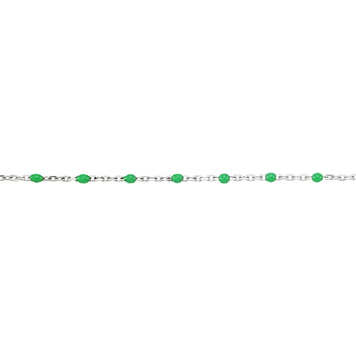 Enamel Chain 1.3mm with 2mm Green Round Enamel - Sterling Silver Rhodium Plated