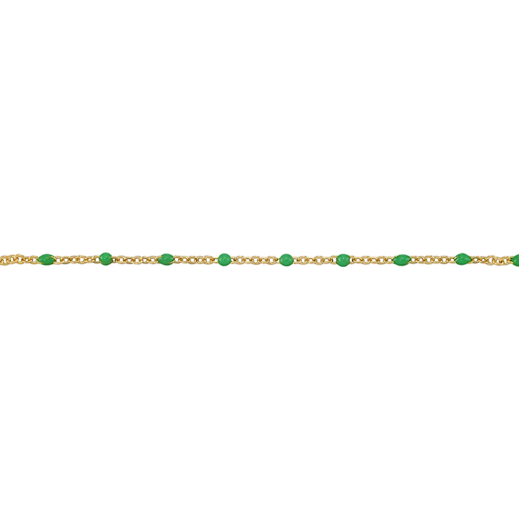 Enamel Chain 1.3mm with 2mm Green Round Enamel - Gold Filled