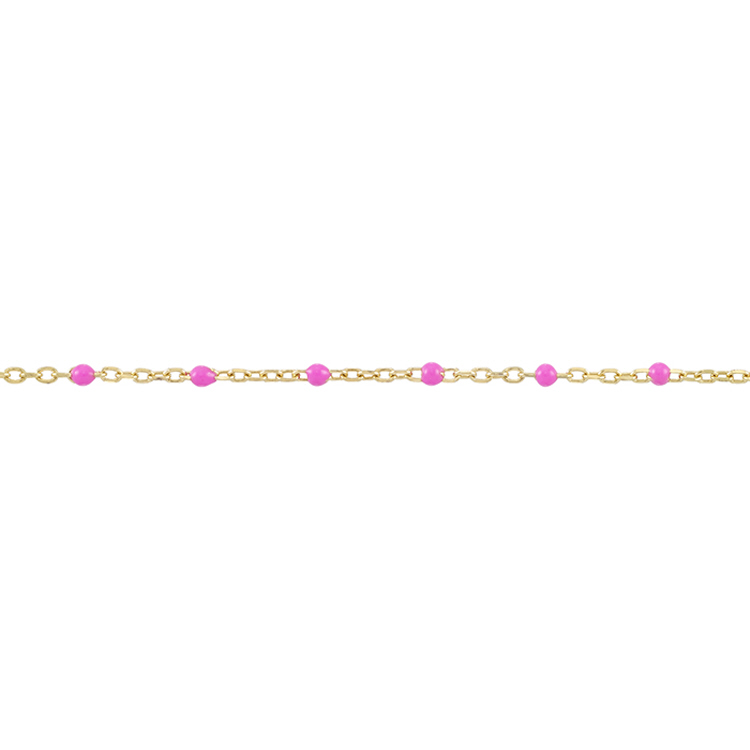 Enamel Chain 1.5mm with 2mm Fushcia Round Enamel - Gold Filled