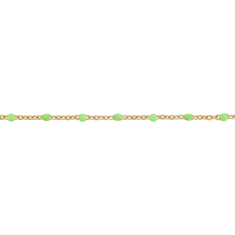 Enamel Chain 1.3mm with 2mm Neon Green Round Enamel - Gold Filled