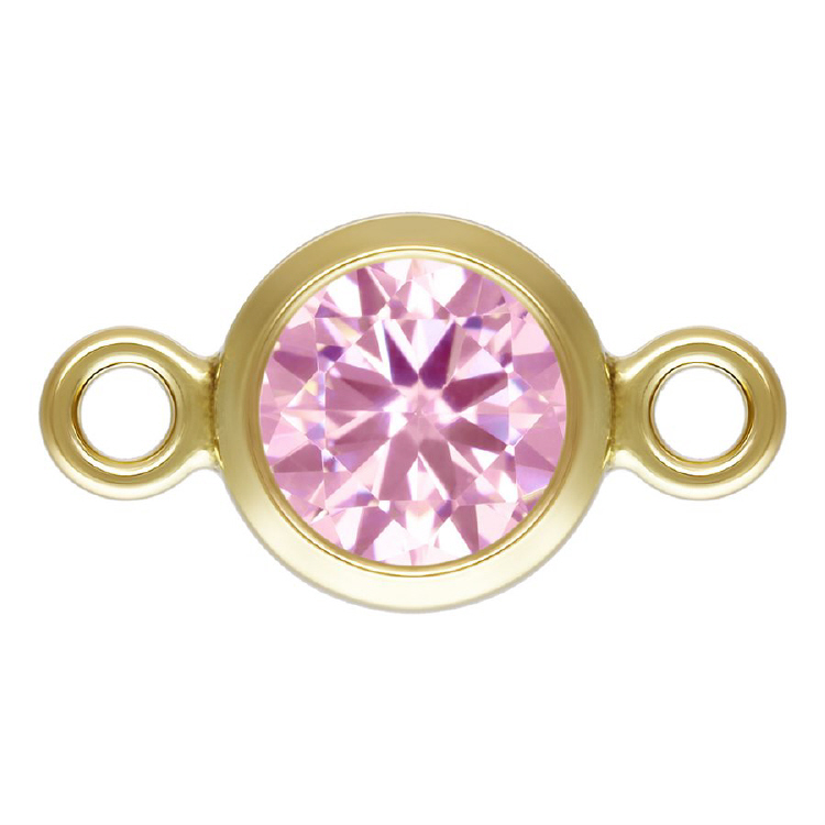 4.0mm Pink/October Birthstone 3A CZ Bezel Connectors (3 pcs) - Gold Filled