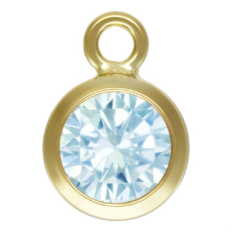 4.0mm Aquamarine/March Birthstone 3A CZ Bezel Drops/Charms (3 pcs) - Gold Filled