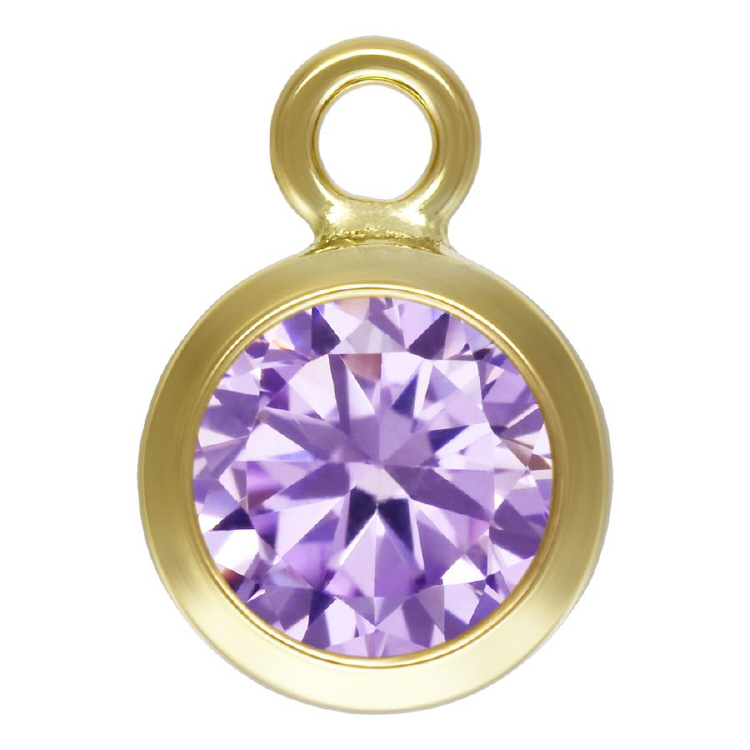 4.0mm Lt. Amethyst/June Birthstone 3A CZ Bezel Drops/Charms (3 pcs) - Gold Filled
