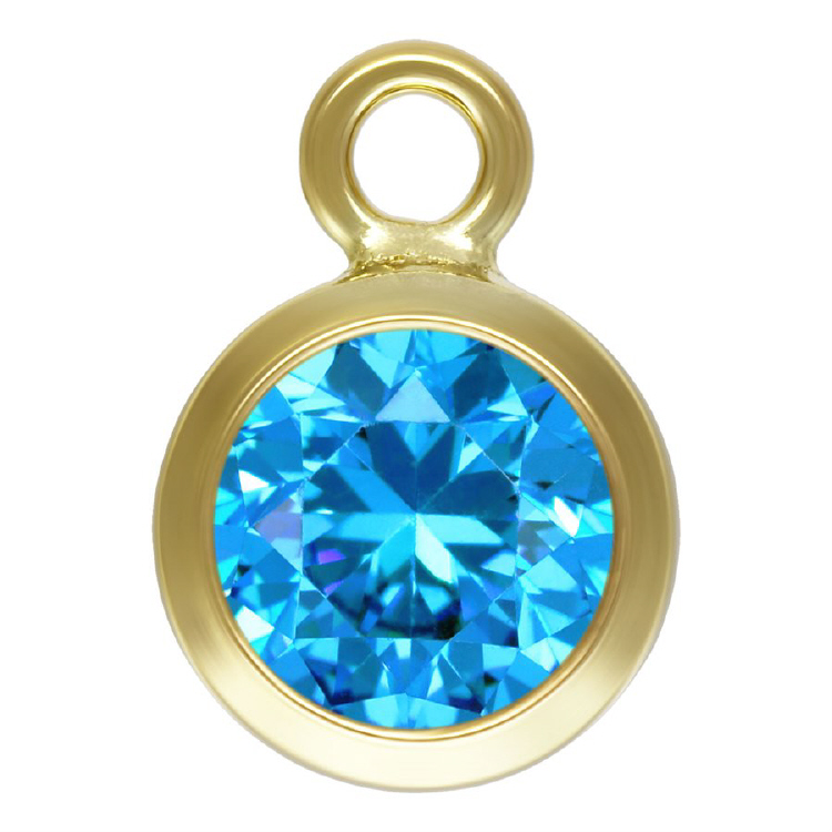 4.0mm Aqua Blue/September Birthstone 3A CZ Bezel Drops/Charms (3 pcs) - Gold Filled