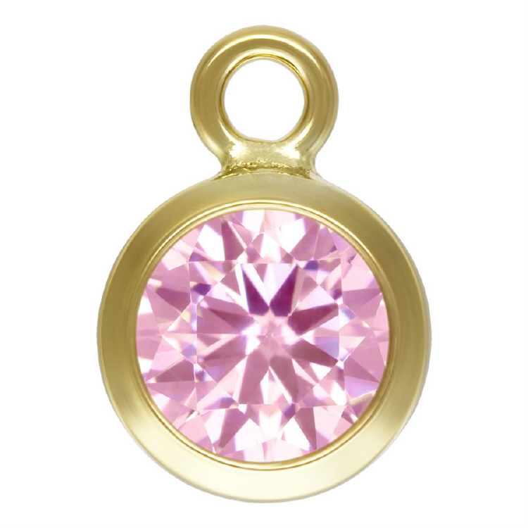 4.0mm Pink/October Birthstone 3A CZ Bezel Drops/Charms (3 pcs) - Gold Filled