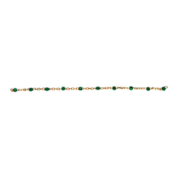 Enamel Chain 1.3mm with 2mm Green Round Enamel - Gold Filled