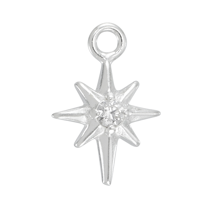Snow Star 12.6x8.5mm Charms with Cubic Zirconia (CZ) - Sterling Silver