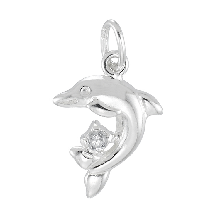 Dolphin 14.5mm Charms with Cubic Zirconia (CZ) - Sterling Silver