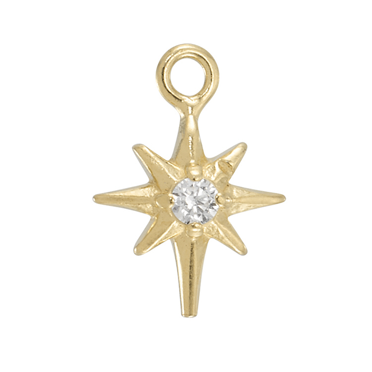 Snow Star 12.6x8.5mm Charms with Cubic Zirconia (CZ) - Sterling Silver Gold Plated