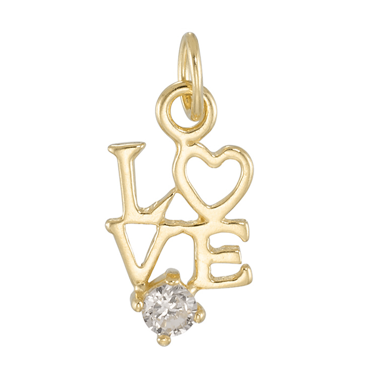 Love 14.6x7.9mm Charms with Cubic Zirconia (CZ) - Sterling Silver Gold Plated