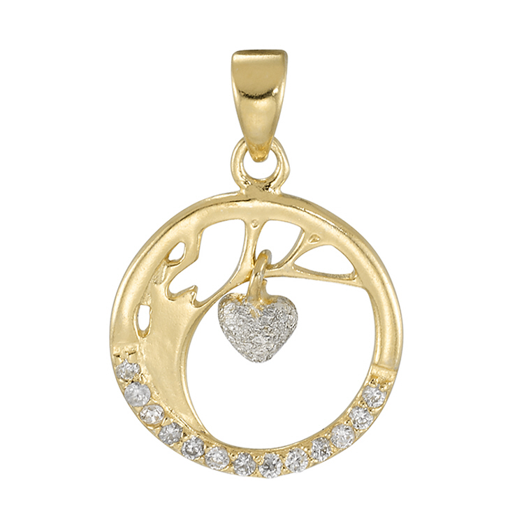 Tree of life w/ Dangle Heart 18.2x15mm Charms with Cubic Zirconia (CZ) - Sterling Silver Gold Plated