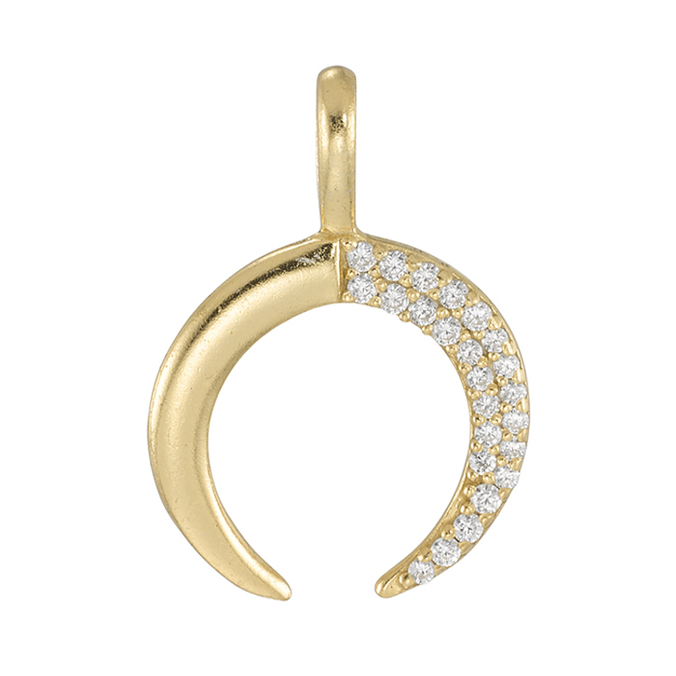 Half Moon 22.5x16mm Charms with Cubic Zirconia (CZ) - Sterling Silver Gold Plated