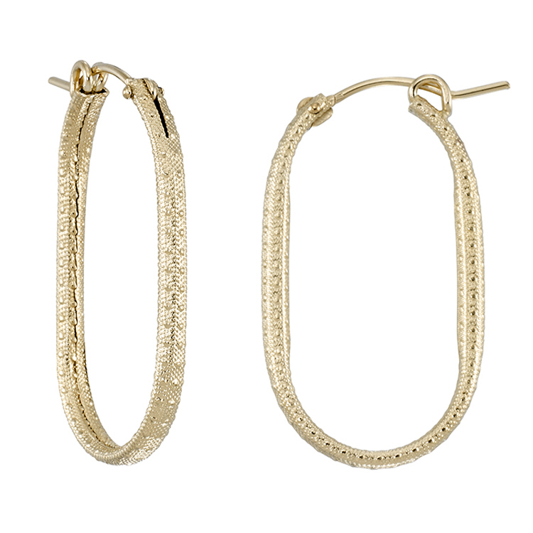 Oblong Hoops with pattern - 2mm thick 18 x 32mm - Gold Filled