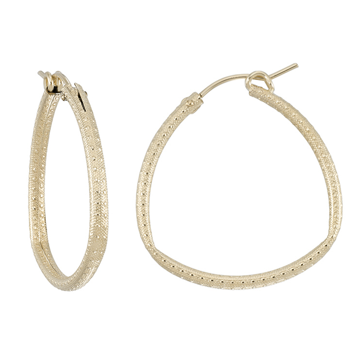 Triangular Hoops with pattern - 2mm thick 28 x 30mm - Gold Filled