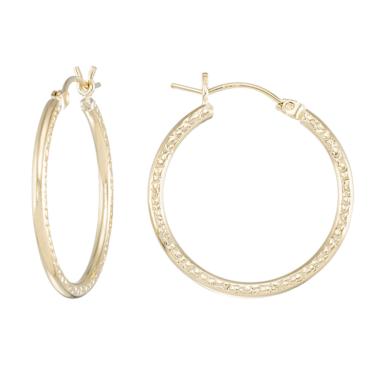2.2 X 28 mm Textured Hoop Earrings - Gold Filled