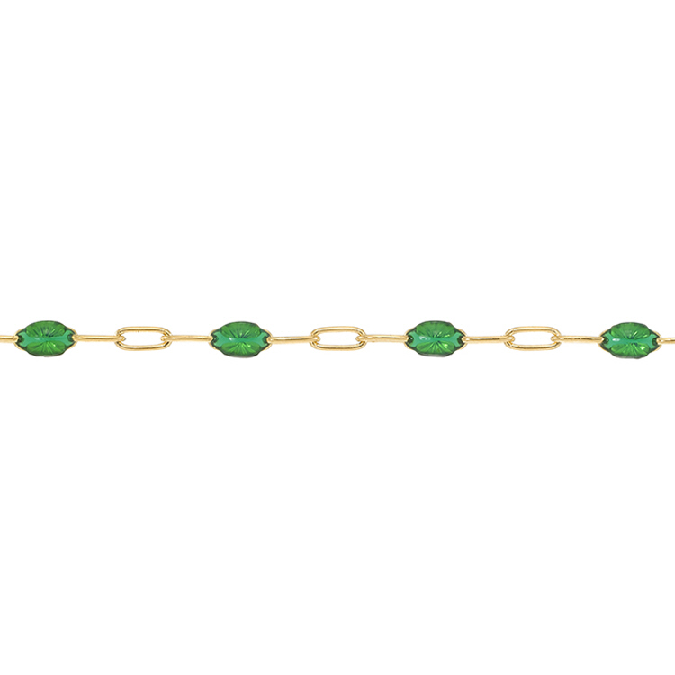 Green Enamel Chain 2.2 x 2.6mm with 2.1mm 3 paper clip links - Gold Filled