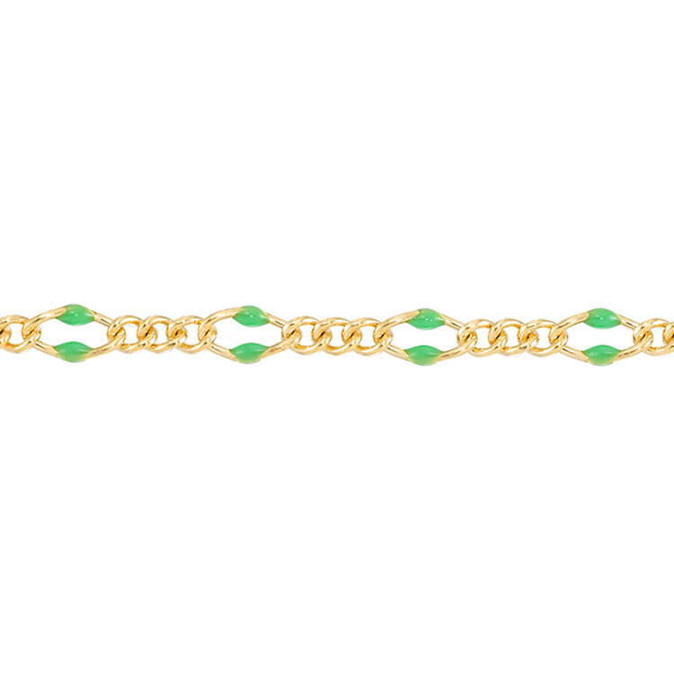 Green Enamel Chain 2.5 x 3.5mm with 1.8mm 3 curb links - Gold Filled