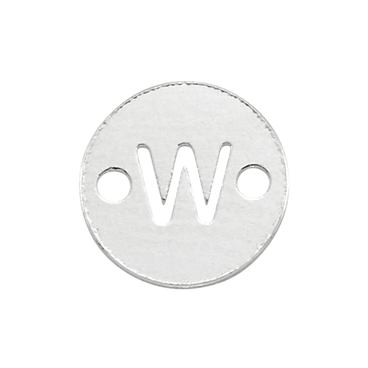6mm Disc Initial/Letter W Connectors (3 pcs) - Sterling Silver