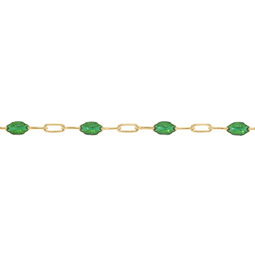 Green Enamel Chain 2.2 x 2.6mm with 2.1mm 3 paper clip links - Gold Filled