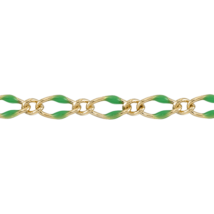 Green Enamel Chain 2.5 x 3.5mm with 1.8mm 1 curb link - Gold Filled