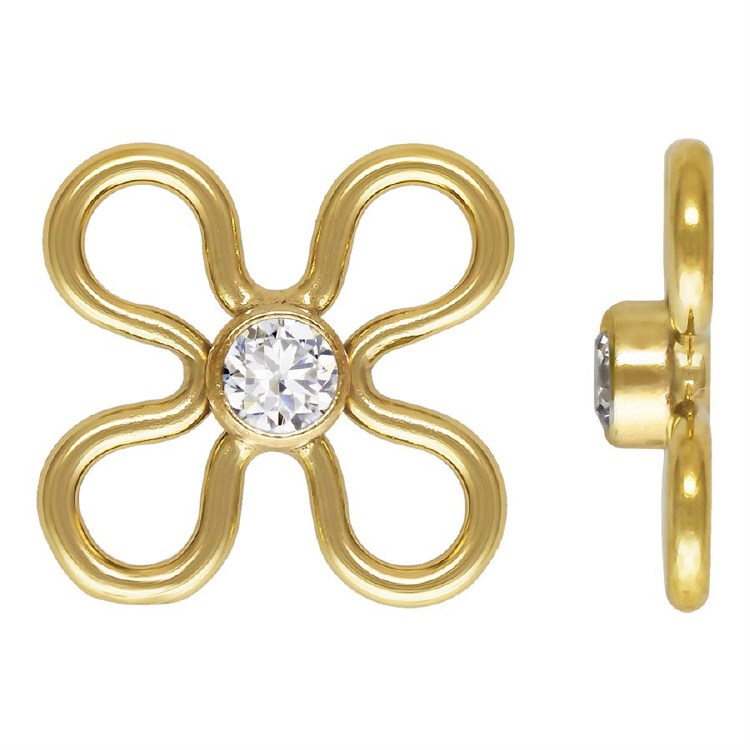 7.5mm Flower Connectors 2mm White CZ (Cubic Zirconia) - Gold Filled