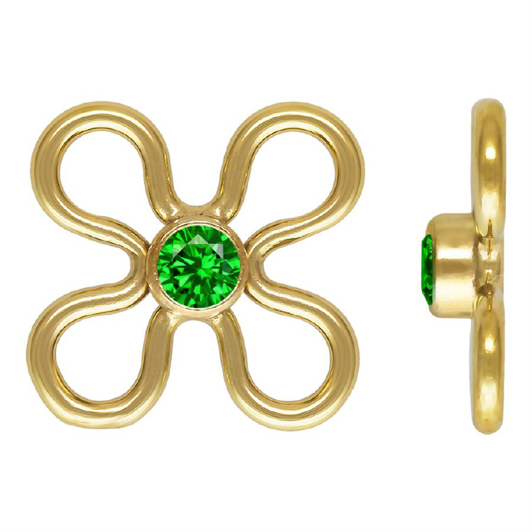 7.5mm Flower Connectors 2mm Green CZ (Cubic Zirconia) - Gold Filled