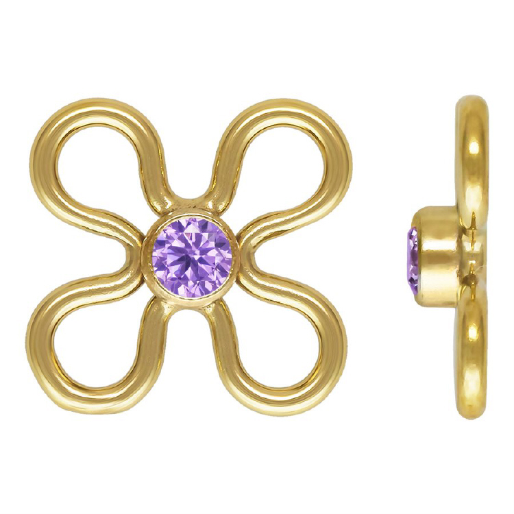 7.5mm Flower Connectors 2mm Light Amethyst CZ (Cubic Zirconia) - Gold Filled