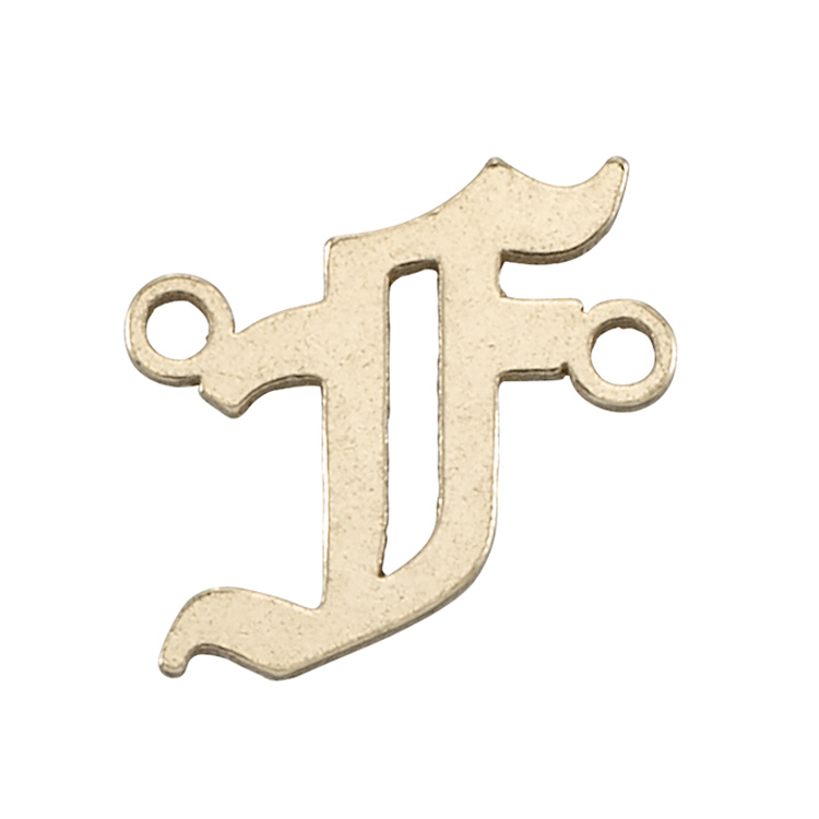 Initial F Old English Block Style Letter Connectors 7mm (3 pcs) - Gold Filled