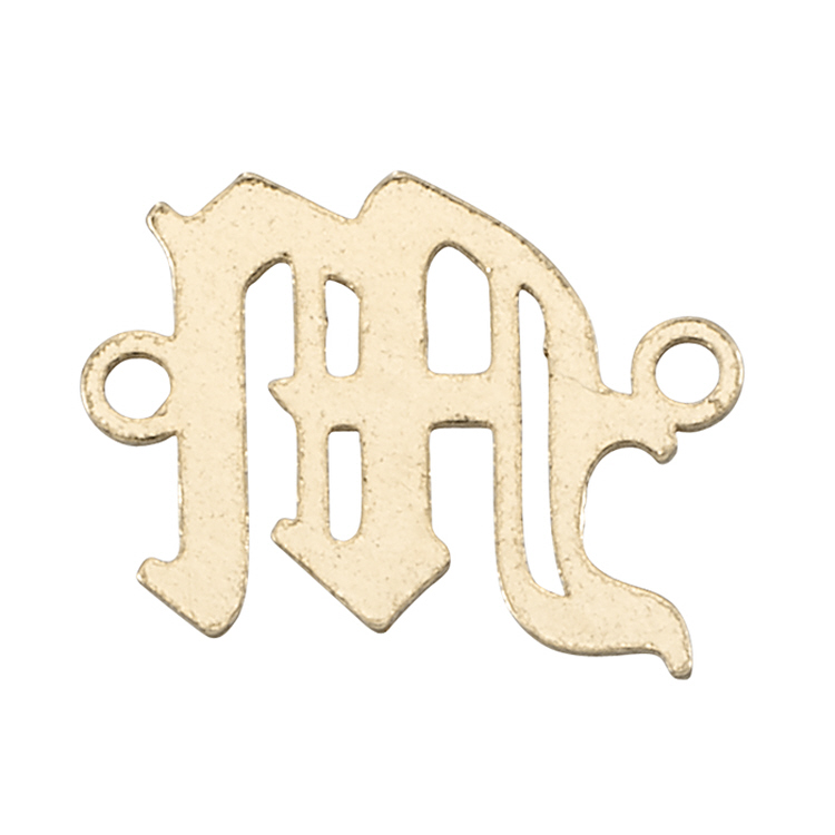 Initial M Old English Block Style Letter Connectors 7mm (3 pcs) - Gold Filled