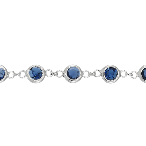 1.6mm Cable Chain with 4.5mm Round Sapphire CZ - Sterling Silver Rhodium Plated