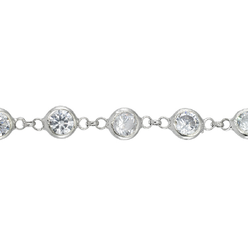 1.6mm Cable Chain with 4.5mm Round Clear CZ - Sterling Silver Rhodium Plated