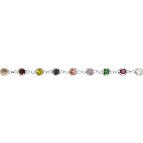 1.6mm Cable Chain with 4.5mm Round Mutlicolored CZs - Sterling Silver Rhodium Plated