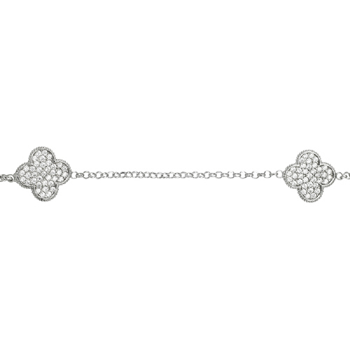 2mm Rolo Chain with 13mm Clover with Clear CZ - Sterling Silver Rhodium Plated