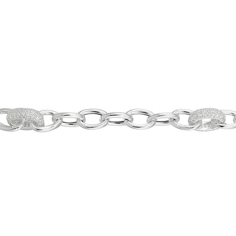 6.5mm Cable Chain with 8.3mm Oval with Clear CZ - Sterling Silver