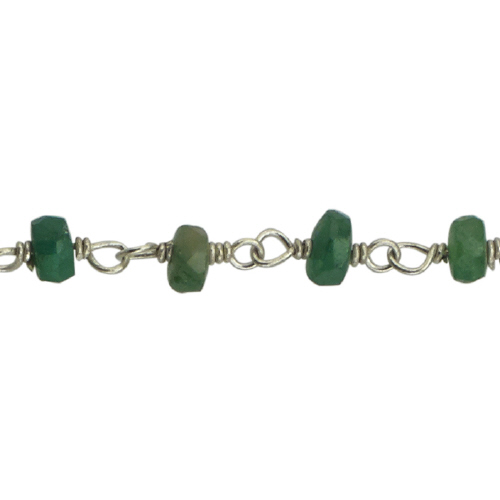 3.5mm Green Agate bead with 1.6mm Cable Chain - Sterling Silver Rhdoium Plated
