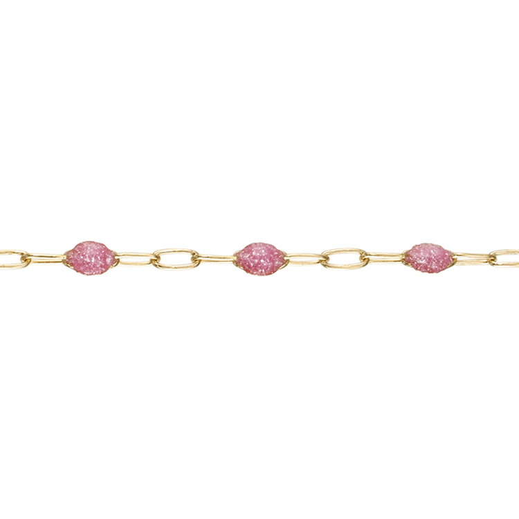 Pink Pearlscent Enamel Chain 1.8 x 3.7mm with 1.5 x 3.7mm 3 paper clip links - Gold Filled