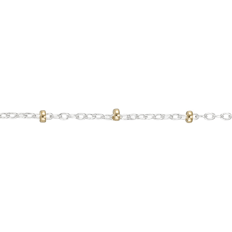 Satellite Chain 1.1 x 1.8mm with 1.9mm Bright Gold Filled Beads - Sterling Silver