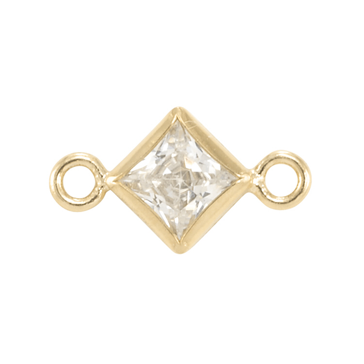 3mm Square/Diamond Connector with Clear Cubic Zirconia (CZ) 3 pcs - Gold Filled