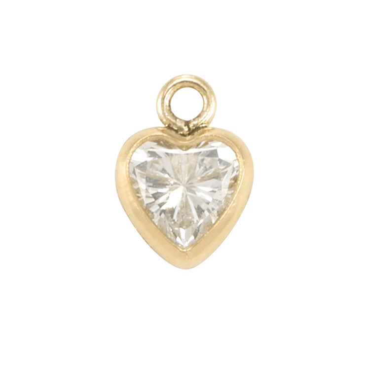 4mm Heart Drop/Charm with Clear Cubic Zirconia (CZ) 3 pcs - Gold Filled