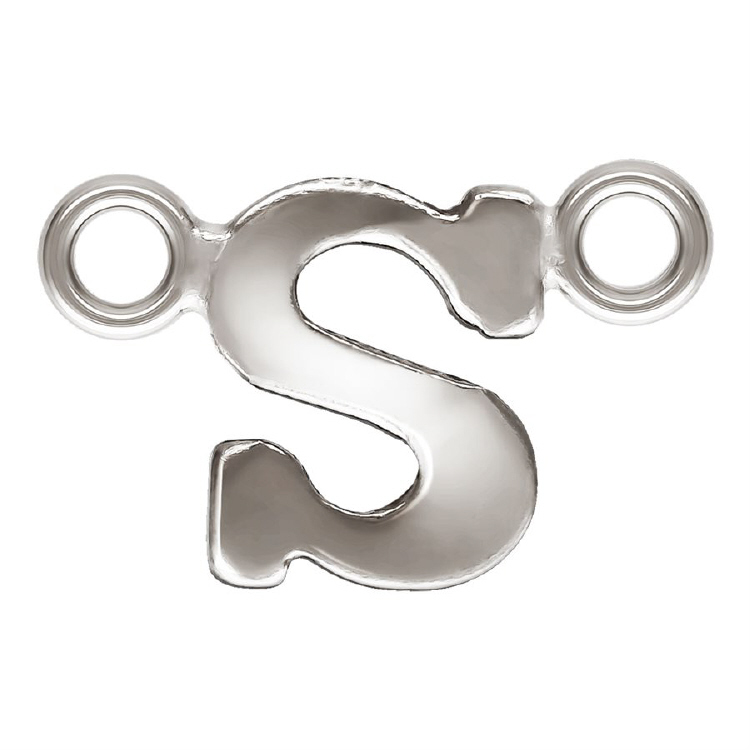 Initial S Block Style Letter Connectors 8mm (3 pcs) - Sterling Silver